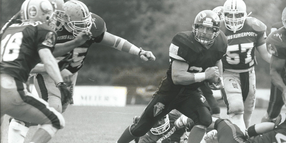 2001 Neuaufbau des Herren-Teams bei den Dortmund Giants als Coach und Spieler.