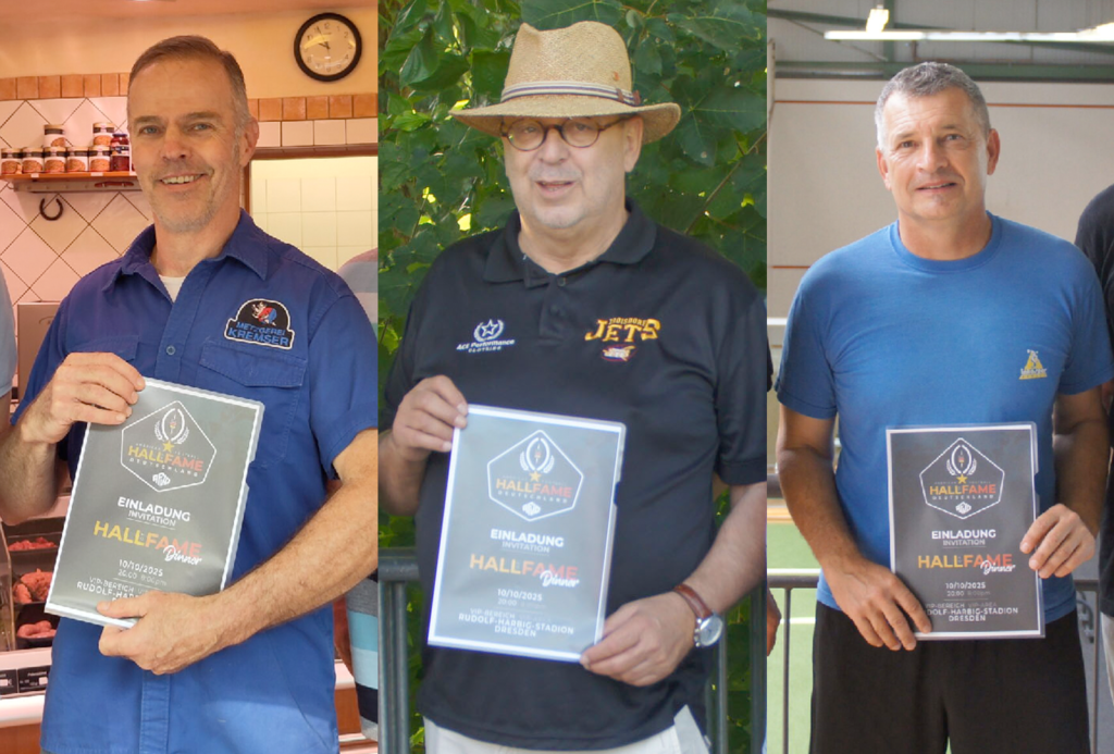Die offizielle Ehrung und Aufnahme der drei neuen Mitglieder in die Hall of Fame findet am 10. Oktober in Dresden statt, am Vorabend des diesjährigen GFL-Bowls.